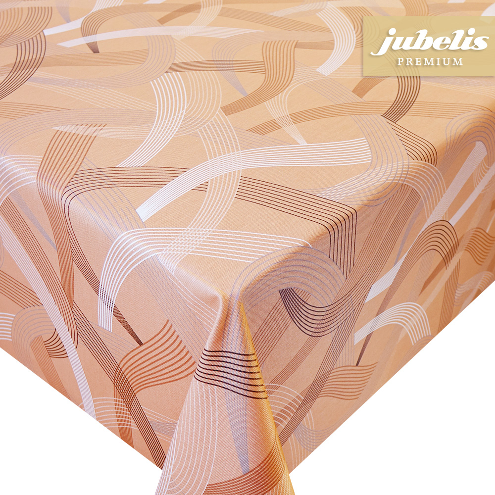 Die Tischdecke mit dem Namen Donnalyn Terra ist der kräftigere Farbton von zwei Farbvarianten, die hier im Shop-Sortiment dieses Musters vorhanden sind. Die geschwungene Form des Musters auf kräftigen terrafarbenen Untergrund bringt Schwung in Ihren Wohnbereich. Diese schöne beschichtete Baumwolle kann durchaus als modern bezeichnet werden ist aber dank ihres Gesamteindruckes recht universell einsetzbar. Hervorzuheben sind bei dieser beschichteten Tischwäsche aber auch ihre Eigenschaften, die im täglichen Gebrauch auffallen. Zum einen ist dieser abwaschbare Tischbelag recht robust und schützt die Tischoberfläche und zum anderen ist dieser sehr pflegeleicht. Einfaches Abwischen reicht oft aus, um leichte Verunreinigung von der Tischdeckeoberfläche zu entfernen. Direkt neben der Produktabbildung finden Sie die verschiedenen gewünschten Größen und Formen in einem Auswahlmenü.