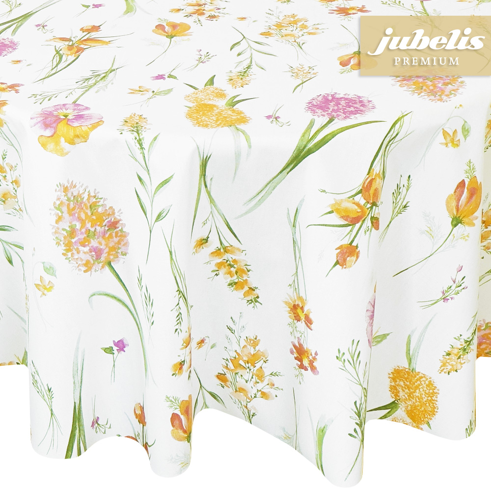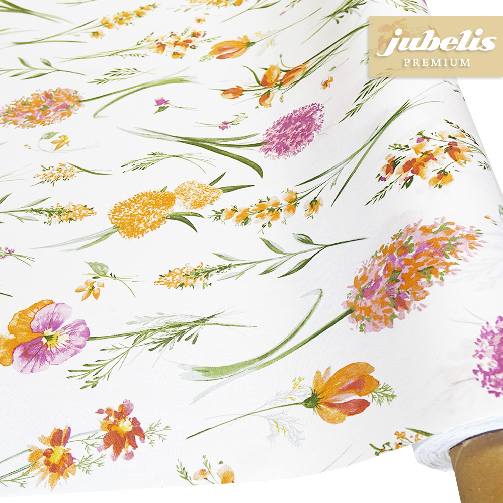 Dieses Blumenmuster sorgt für gute Stimmung und passt in viele Wohnbereiche. Die fein gezeichneten Blumen verleihen dieser abwaschbaren Tischwäsche eine besondere Note. Dank seiner leichten Oberflächenbeschichtung ist diese Tischwäsche relativ schmutzunempfindlich und kann feucht abgewischt werden. Auch im geschützten Außenbereich kann diese praktische und schöne Tischwäsche zur Anwendung kommen. Die abwaschbare Tischdecke setzt sich von robusten Tischdecken wohltuend ab. Direkt neben der Produktabbildung finden Sie die verschiedenen Größen und Formen in einem Auswahlmenü. Diesen schönen abwaschbaren Tischbelag können Sie, wenn Sie eine größere Menge an Meterware brauchen, hier auch als eine ganze Rolle kaufen. Nutzen auch Sie diese ansprechende Tischwäsche mit ihrem praktischen Eigenschaften, um ihr Wohnumfeld ganz einfach aufzuwerten.