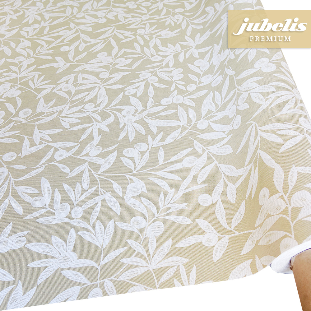 Die beschichtete Baumwolle mit dem Namen Lorenzia hat eine optisch zurückhaltende Erscheinung. Vereinfachte Abbildungen von Olivenzweigen bedecken den gesamten Tischbelag. Da bei dieser Tischwäsche nur wenige verschiedene Farbtöne gut zueinander passend zum Einsatz kommen ergibt sich hier ein sehr dezentes Muster. Somit sind dem Einsatzgebiet dieser ansprechenden Tischwäsche kaum Grenzen gesetzt. Aber auch im täglichen Gebrauch kann diese beschichtete Tischwäsche überzeugen. Die Oberfläche der Tischwäsche lässt sich durch einfaches Abwischen von leichten Verschmutzungen befreien. Nutzen Sie diese gleichermaßen ansprechende und praktische Tischwäsche in Ihrem Alltag. Direkt neben der Produktabbildung finden Sie die verschiedenen gewünschten Größen und Formen in einem Auswahlmenü. Dieses Muster ist hier auch als ganze Rolle erhältlich.
