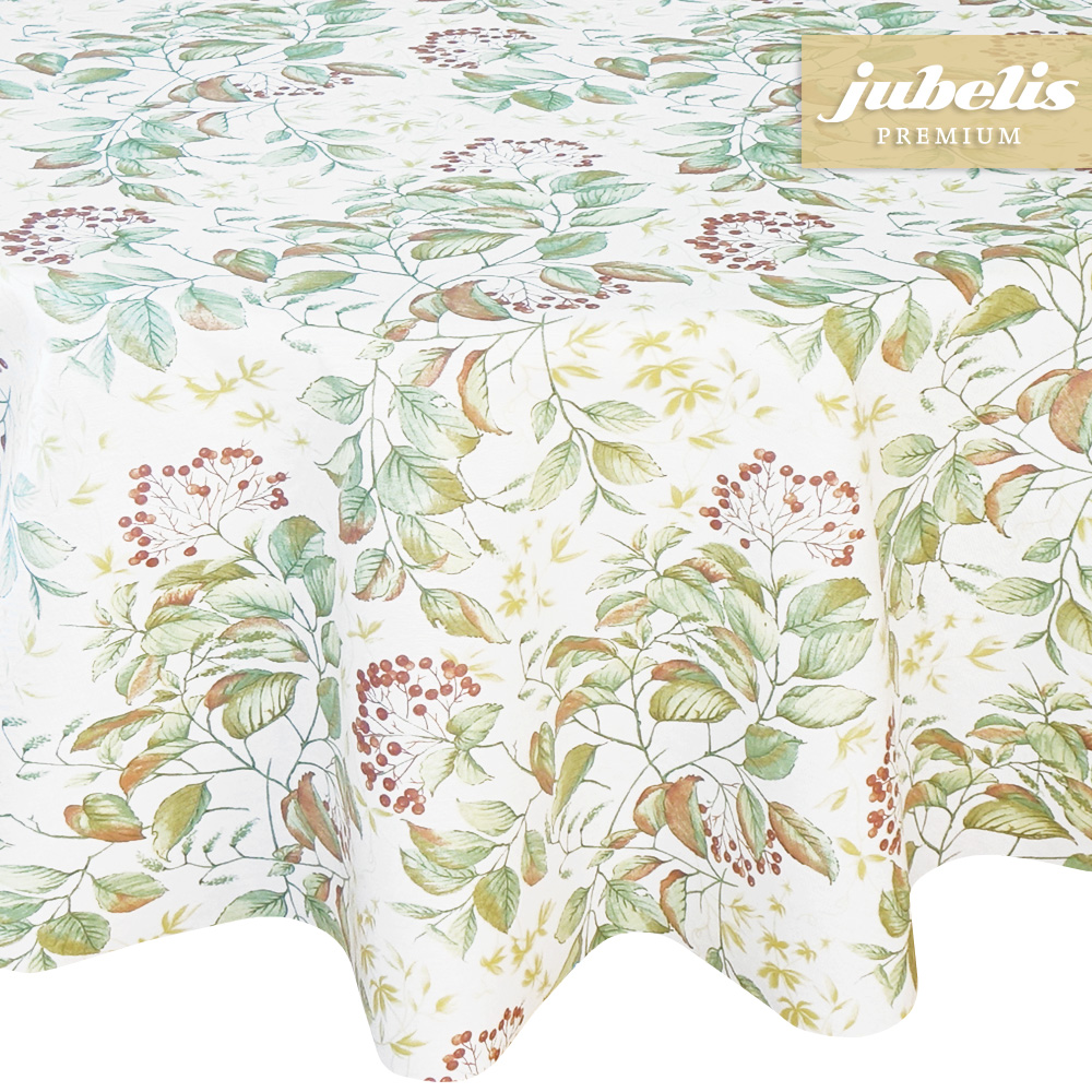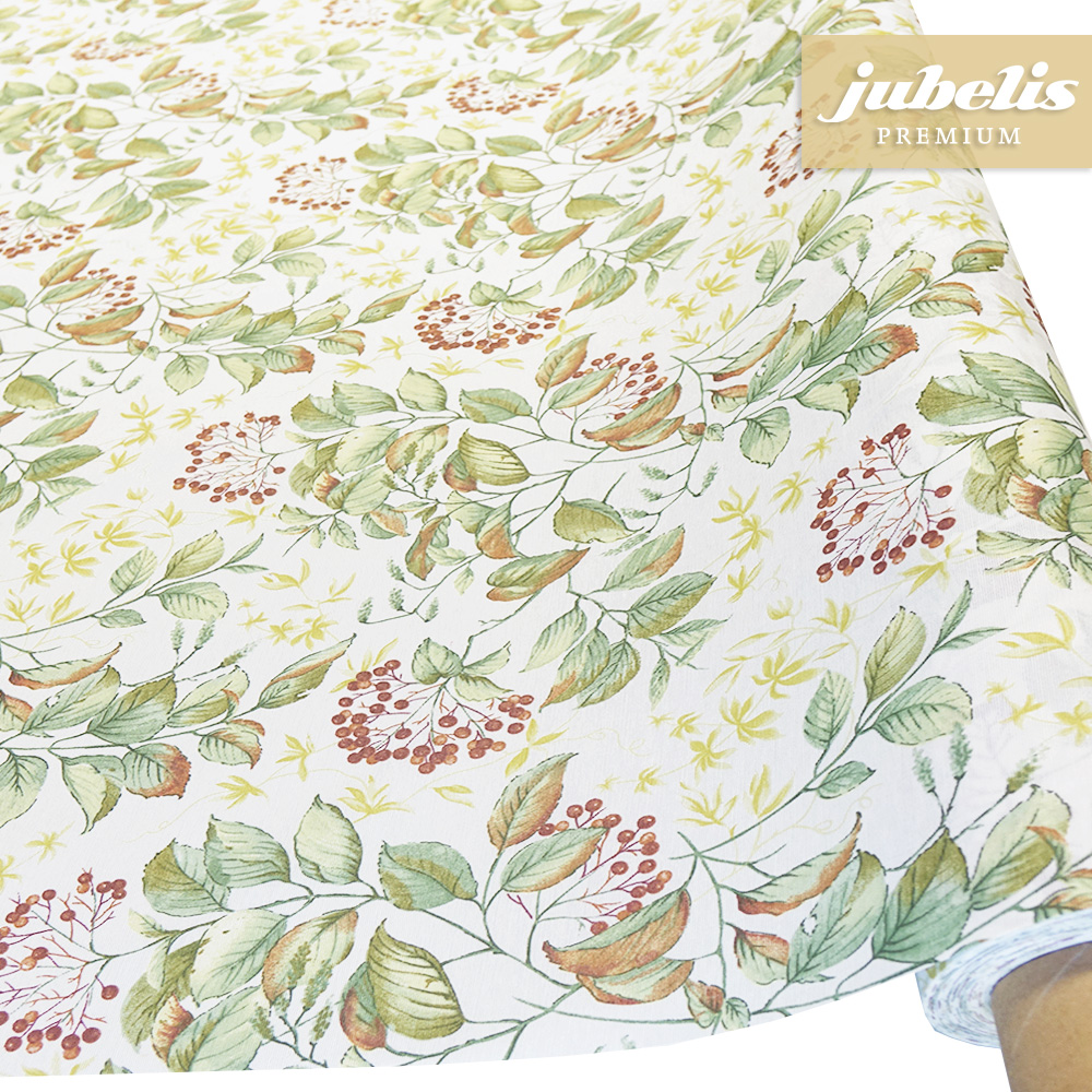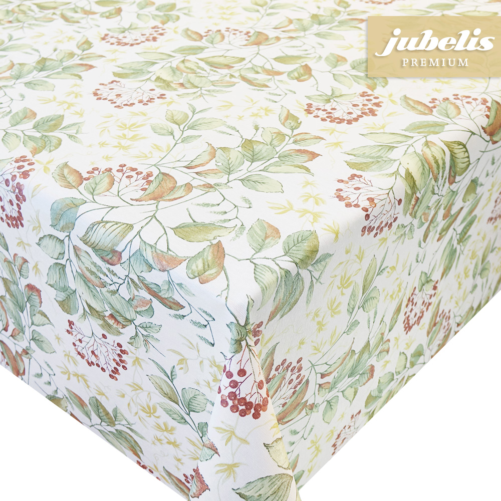Auf diesem abwaschbaren Tischbelag gibt es einiges zu entdecken. Neben dekorativen Rankenmotiven und Beeren besitzt dieses Muster weitere verschiedene florale Bestandteile. Der helle Untergrund der Tischdecke sorgt für eine kontrastreiche Darstellung des Musterdrucks. Das freundliche Muster lässt sich in vielen Wohnbereichen auf dem Tisch verwenden. Dank seiner wasserabweisenden Oberfläche ist diese sowohl im Innenbereich als auch im geschützten Außenbereich nutzbar. Trotz seiner stoffähnlichen Eigenschaften kann bei Verunreinigungen der Tischbelag einfach abgewischt werden. Dies ist ein wesentlicher Vorteil gegenüber herkömmlichen Tischwäschen aus reinem Stoff. In der Größenauswahl direkt neben der Produktabbildung können Sie die gewünschte Größe einfach auswählen. Profitieren Sie von diesem gleichermaßen ansprechenden und pflegeleichten Tischbelag.
