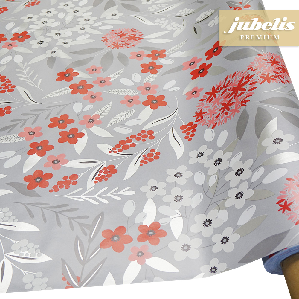 Entdecken Sie die zeitlose Eleganz und Funktionalität dieser hochwertigen, abwaschbaren Tischwäsche aus Wachstum. Dieses Muster besitzt auf einem grauen Grund ein fein gezeichnetes florales Muster aus Blüten und Blättern. Einzelne Blätter sind hier mit einem feinen Silbereffekt hinterlegt, was diesen Tischbelag noch einmal optisch veredelt. Das hochwertige Wachstuch schützt Ihren Tisch vor Flecken, Kratzern und Feuchtigkeit. Die absolut glatte Oberfläche dieser Tischdecke lässt sich durch feuchtes Abwischen einfach säubern. Das Wachstuch mit dem floralen Muster verschönert nicht nur den privaten Wohnbereich, sondern auch gastronomische Einrichtungen. Profitieren auch Sie von diesem modernen und innovativen Tischbelag. In der Größenauswahl finden Sie die passende Deckengröße. Die Meterware mit ihrem besonderen Muster ist aber auch als ganze Rolle auswählbar.