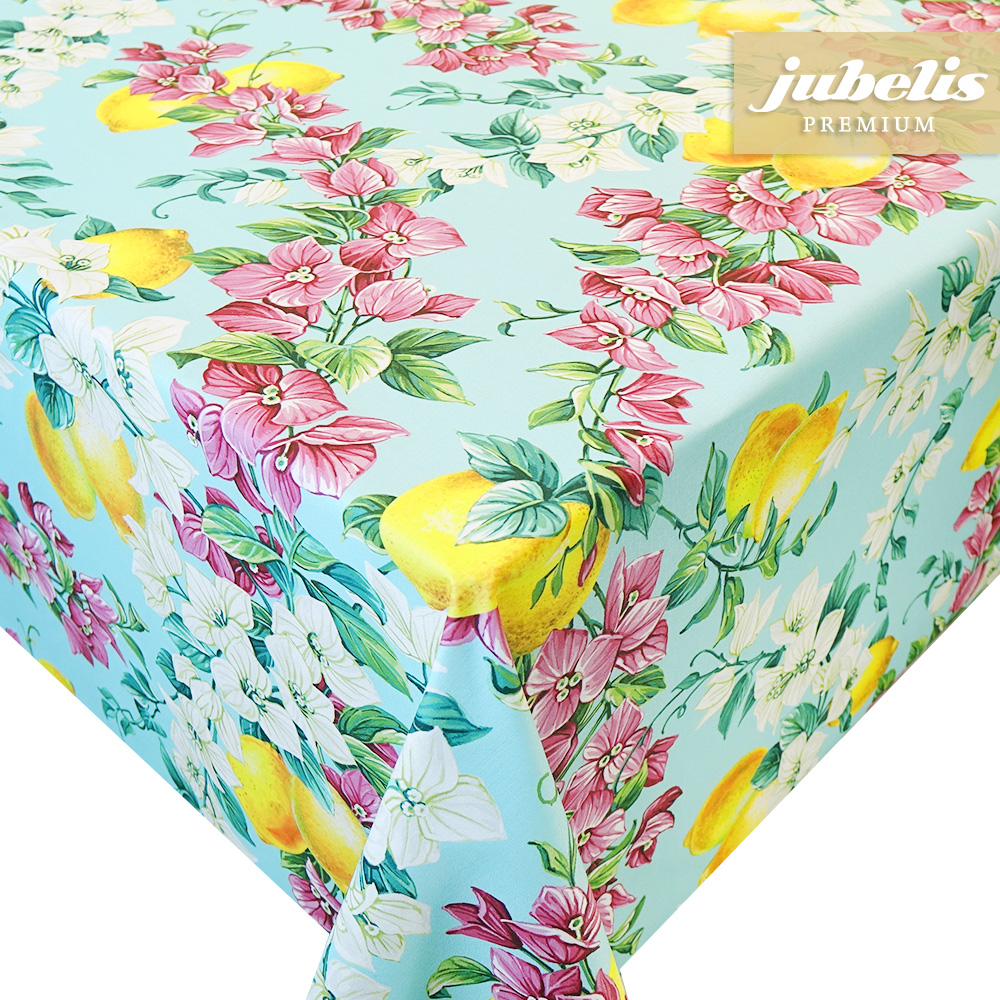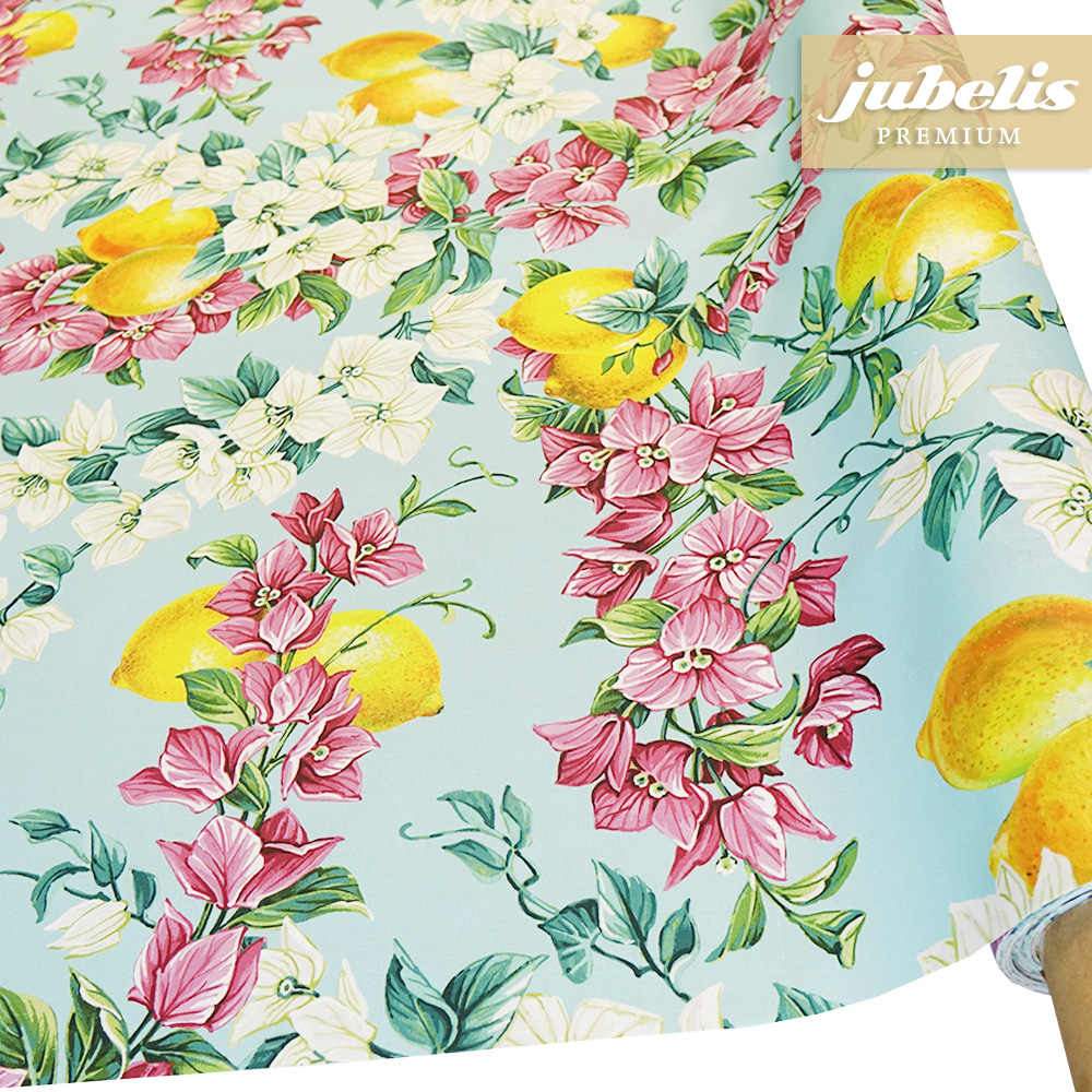 Diese außergewöhnliche Tischdecke in ihrer feinen Qualität bietet besonders farbenfrohe Abbildungen. Die detailliert gezeichneten Blumen und Ranken sowie Zitronenmotive ziehen sich gleichmäßig über den gesamten Tischbelag. Mit dieser besonderen Tischwäsche können Sie Ihrem Wohnbereich eine besonders freundliche Ausstrahlung verleihen. Dabei sollten auch die praktischen Eigenschaften dieser schönen Tischwäsche berücksichtigt werden. Dieser feine Tischbelag besitzt eine leicht wasserabweisende Oberfläche und schützt empfindliche Tischoberflächen wirksam. Einfaches Abwischen reicht aus, um leichte Verschmutzungen zu entfernen. Direkt neben der Produktabbildung finden Sie das umfangreiche Auswahlmenü. Hier können Sie die gewünschte Tischdeckengröße einfach auswählen. Dieser schöne Luxus-Tischbelag ist auch als ganze Rolle erhältlich.