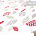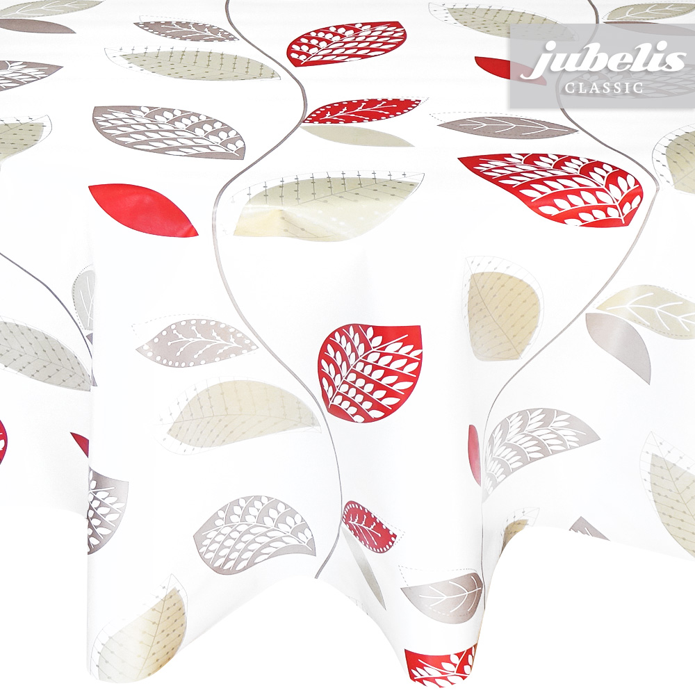 Das Wachstuch Bea besitzt ein Muster, welches verschiedene florale Elemente stark vereinfacht abbildet. Die Blätter auf hellem Grund mit ihrem zum Teil leicht roten Effekt ergeben einen freundlichen Tischbelag. Das Wachstuch Bea ist hier in einer weiteren Farbvariante verfügbar. Dank der besonderen Produkteigenschaften ist dieses Wachstuch sowohl für die private als auch für die gewerbliche Anwendung bestens geeignet. Das Wachstuch mit seinem weichen Vliesrücken und einer glatten Oberfläche schützt empfindliche Tischoberflächen und lässt sich durch feuchtes Abwischen einfach reinigen. Da die Oberfläche wasserabweisend ist, kann das Wachstuch sowohl im Innen- als auch im Außenbereich eingesetzt werden. Profitieren auch Sie von diesem gleichermaßen ansprechenden und pflegeleichten Tischbelag aus Wachstuch. Dieser schöne Tischbelag ist hier als Tischdecke, Meterware oder ganze Rolle erhältlich. Direkt neben der Produktabbildung finden Sie das Auswahlmenü, in dem Sie Größe und Form wählen können. Benötigen Sie von diesem schönen und praktischen Wachstuch eine größere Anzahl, so bietet sich der Kauf einer ganzen Rolle an, die zusätzlich zu unserem günstigen Meterpreis abermals rabattiert ist.