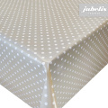 Diese kleine, gepunktete Tischdecke bietet ein ausgewogenes Design und kann so in vielen Wohnbereichen eingesetzt werden. gepunktete Muster hinterlassen immer noch einen recht modernen Eindruck und sind dank der verwendeten Punktgröße und der Grundfarbe recht Dezent sind. Das Wachstuch mit seinem weichen Vliesrücken und einer glatten Oberfläche schützt empfindliche Tischoberflächen und lässt sich durch feuchtes Abwischen einfach reinigen. Da die Oberfläche wasserabweisend ist, kann das Wachstuch sowohl im Innen- als auch im Außenbereich eingesetzt werden. Das Muster wird hier im Shop auch noch in anderen Farben angeboten. Profitieren auch Sie von diesem gleichermaßen ansprechenden und pflegeleichten Tischbelag aus Wachstuch. Dieser schöne Tischbelag ist hier als Tischdecke, Meterware oder ganze Rolle erhältlich. Direkt neben der Produktabbildung finden Sie das Auswahlmenü, in dem Sie Größe und Form wählen können. Benötigen Sie von diesem schönen und praktischen Wachstuch eine größere Anzahl, so bietet sich hier der Kauf einer ganzen Rolle an, die zusätzlich zu unserem günstigen Meterpreis abermals rabattiert ist.
