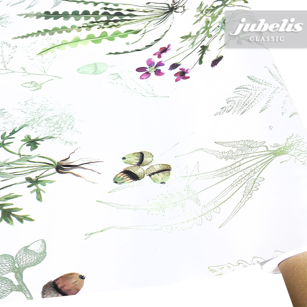 Diese schöne Tischdecke aus Wachstuch besitzt verschiedene Pflanzenmotive, die gleichmäßig über den gesamten Tischbelag verteilt angeordnet sind. Dabei sind die einzelnen Pflanzenmotive sehr detailliert dargestellt. Das Wachstuch mit seinem weichen Vliesrücken und einer glatten Oberfläche schützt empfindliche Tischoberflächen und lässt sich durch feuchtes Abwischen einfach reinigen. Da die Oberfläche wasserabweisend ist, kann das Wachstuch sowohl im Innen- als auch im Außenbereich eingesetzt werden. Das Muster wird hier im Shop auch noch in anderen Farben angeboten. Profitieren auch Sie von diesem gleichermaßen ansprechenden und pflegeleichten Tischbelag aus Wachstuch. Dieser schöne Tischbelag ist hier als Tischdecke, Meterware oder ganze Rolle erhältlich. Direkt neben der Produktabbildung finden Sie das Auswahlmenü, in dem Sie Größe und Form wählen können. Benötigen Sie von diesem schönen und praktischen Wachstuch eine größere Anzahl, so bietet sich hier der Kauf einer ganzen Rolle an, die zusätzlich zu unserem günstigen Meterpreis abermals rabattiert ist.