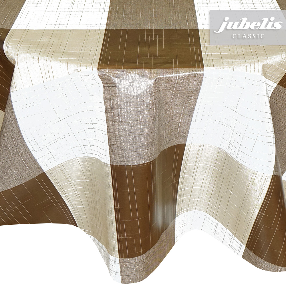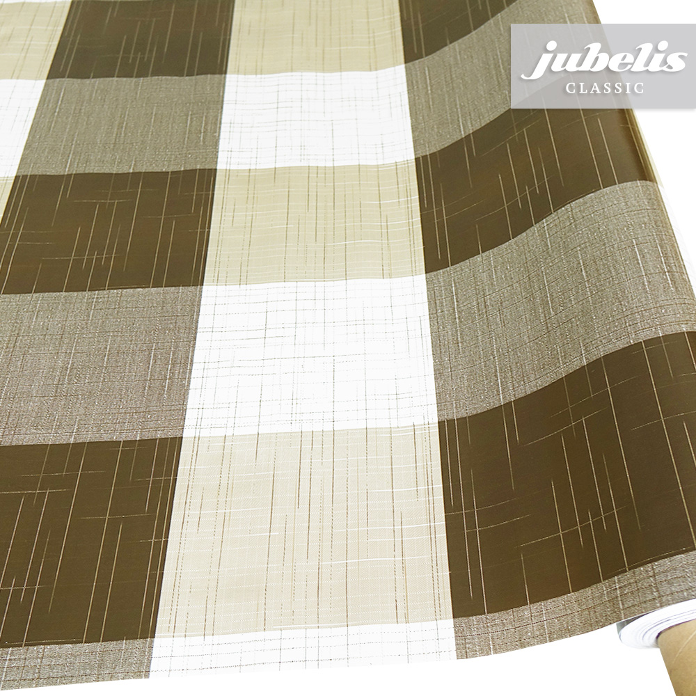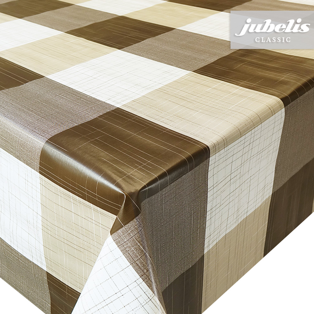 Dieses besondere karierte Muster besitzt eine optisch angedeutete Strukturierung. Die verwendeten Farben und das Muster sorgen für ein besonderes optisches Gesamtergebnis. Profitieren Sie von diesem ansprechenden, abwaschbaren Tischbelag aus Wachstuch. Dank der besonderen Produkteigenschaften ist dieses Wachstuch sowohl für die private als auch für die gewerbliche Anwendung bestens geeignet. Das Wachstuch mit seinem weichen Vliesrücken und einer glatten Oberfläche schützt empfindliche Tischoberflächen und lässt sich durch feuchtes Abwischen einfach reinigen. Da die Oberfläche wasserabweisend ist, kann das Wachstuch sowohl im Innen- als auch im Außenbereich eingesetzt werden. Profitieren auch Sie von diesem gleichermaßen ansprechenden und pflegeleichten Tischbelag aus Wachstuch. Dieser schöne Tischbelag ist hier als Tischdecke, Meterware oder ganze Rolle erhältlich. Direkt neben der Produktabbildung finden Sie das Auswahlmenü, in dem Sie Größe und Form wählen können. Benötigen Sie von diesem schönen und praktischen Wachstuch eine größere Anzahl, so bietet sich der Kauf einer ganzen Rolle an, die zusätzlich zu unserem günstigen Meterpreis abermals rabattiert ist.