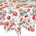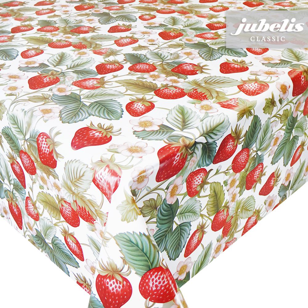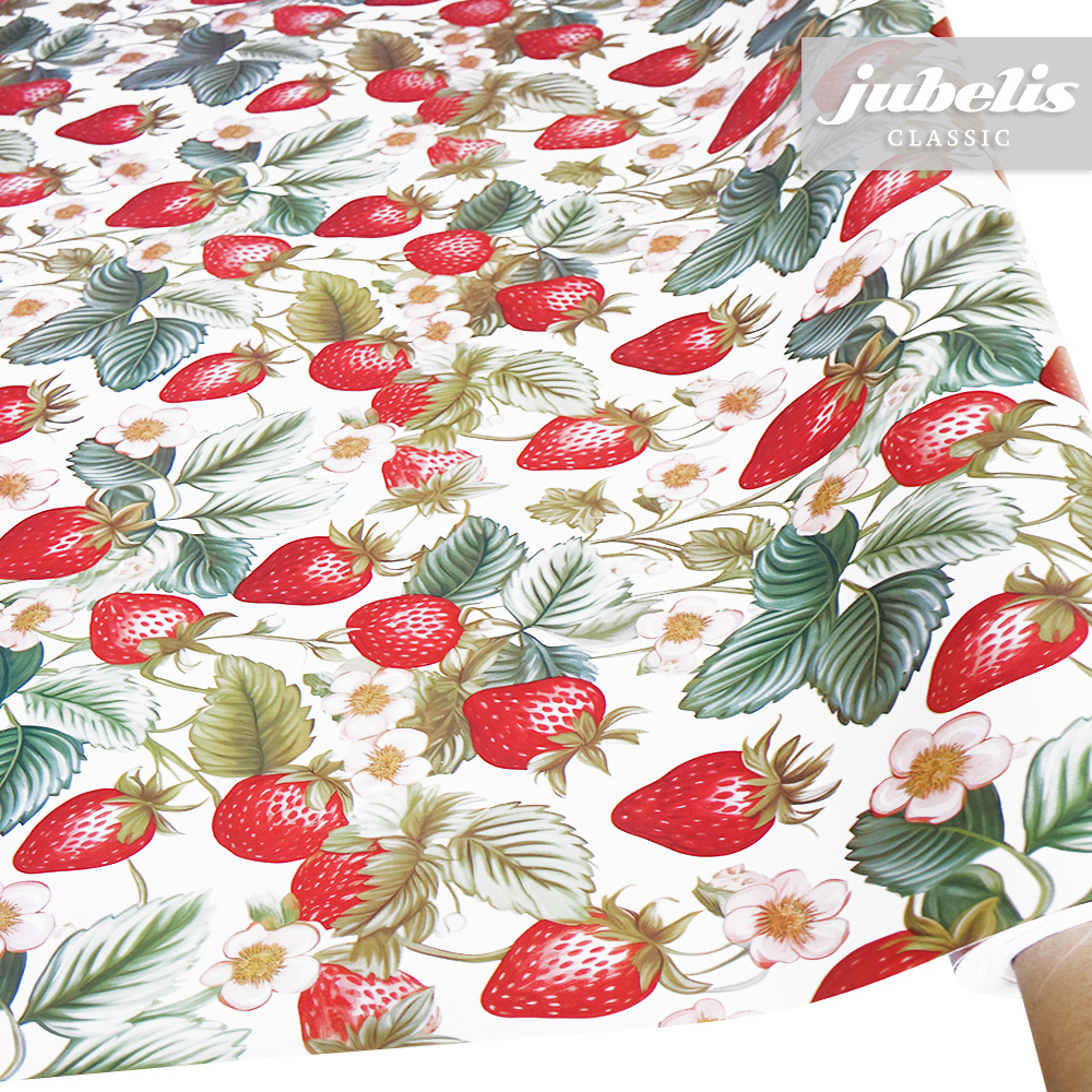 Bei diesem Muster bedecken Erdbeerpflanzen fast den gesamten hellen Untergrund dieses Wachstuchs. Mit diesem Wachstuch holen Sie sich ein Stück Garten in Ihren Wohnbereich und bringen auch etwas Farbe ins Spiel. Nutzen Sie dieses gleichermaßen schöne und praktische Wachstuch in Ihrem Alltag. Dank der besonderen Produkteigenschaften ist dieses Wachstuch sowohl für die private als auch für die gewerbliche Anwendung bestens geeignet. Das Wachstuch mit seinem weichen Vliesrücken und einer glatten Oberfläche schützt empfindliche Tischoberflächen und lässt sich durch feuchtes Abwischen einfach reinigen. Da die Oberfläche wasserabweisend ist, kann das Wachstuch sowohl im Innen- als auch im Außenbereich eingesetzt werden. Profitieren auch Sie von diesem gleichermaßen ansprechenden und pflegeleichten Tischbelag aus Wachstuch. Dieser schöne Tischbelag ist hier als Tischdecke, Meterware oder ganze Rolle erhältlich. Direkt neben der Produktabbildung finden Sie das Auswahlmenü, in dem Sie Größe und Form wählen können. Benötigen Sie von diesem schönen und praktischen Wachstuch eine größere Anzahl, so bietet sich der Kauf einer ganzen Rolle an, die zusätzlich zu unserem günstigen Meterpreis abermals rabattiert ist.