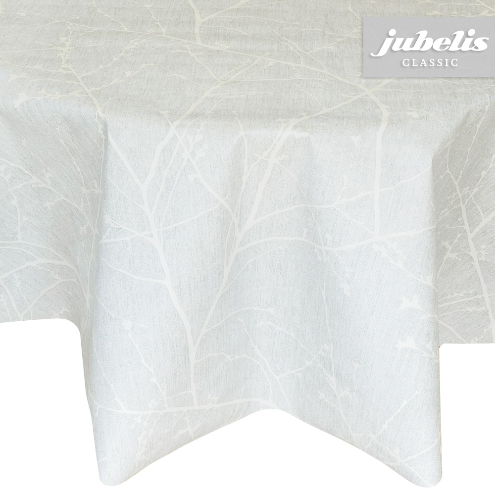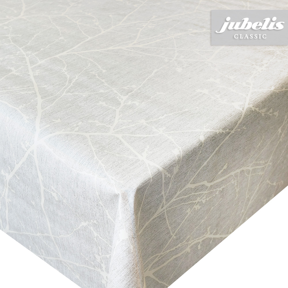 Das Wachstuch Irene hat eine recht dezente optische Erscheinung. Die imitierte leichte Stoffstruktur zieht sich gleichmäßig über den gesamten Tischbelag. Ein Muster aus Ästen und Zweigen lockert den dezenten Tischbelag angenehm auf. Nutzen Sie dieses schöne Wachstuch in Ihrem Alltag. Das Wachstuch mit seinem weichen Vliesrücken und einer glatten Oberfläche schützt empfindliche Tischoberflächen und lässt sich durch feuchtes Abwischen einfach reinigen. Da die Oberfläche wasserabweisend ist, kann das Wachstuch sowohl im Innen- als auch im Außenbereich eingesetzt werden. Das Muster wird hier im Shop auch noch in anderen Farben angeboten. Profitieren auch Sie von diesem gleichermaßen ansprechenden und pflegeleichten Tischbelag aus Wachstuch. Dieser schöne Tischbelag ist hier als Tischdecke, Meterware oder ganze Rolle erhältlich. Direkt neben der Produktabbildung finden Sie das Auswahlmenü, in dem Sie Größe und Form wählen können. Benötigen Sie von diesem schönen und praktischen Wachstuch eine größere Anzahl, so bietet sich hier der Kauf einer ganzen Rolle an, die zusätzlich zu unserem günstigen Meterpreis abermals rabattiert ist.