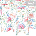 Dieses Wachstuch versprüht eine gewisse Leichtigkeit. Farbenfrohe Blumen sind ein optisches Hauptbestandteil dieses Wachstuchs. Sämtliche Musterelemente sind auf einem hellen Grund abgebildet. Nutzen Sie dieses freundliche und ansprechende Muster auf Ihrem Tisch. Das Wachstuch mit seinem weichen Vliesrücken und einer glatten Oberfläche schützt empfindliche Tischoberflächen und lässt sich durch feuchtes Abwischen einfach reinigen. Da die Oberfläche wasserabweisend ist, kann das Wachstuch sowohl im Innen- als auch im Außenbereich eingesetzt werden. Das Muster wird hier im Shop auch noch in anderen Farben angeboten. Profitieren auch Sie von diesem gleichermaßen ansprechenden und pflegeleichten Tischbelag aus Wachstuch. Dieser schöne Tischbelag ist hier als Tischdecke, Meterware oder ganze Rolle erhältlich. Direkt neben der Produktabbildung finden Sie das Auswahlmenü, in dem Sie Größe und Form wählen können. Benötigen Sie von diesem schönen und praktischen Wachstuch eine größere Anzahl, so bietet sich hier der Kauf einer ganzen Rolle an, die zusätzlich zu unserem günstigen Meterpreis abermals rabattiert ist.