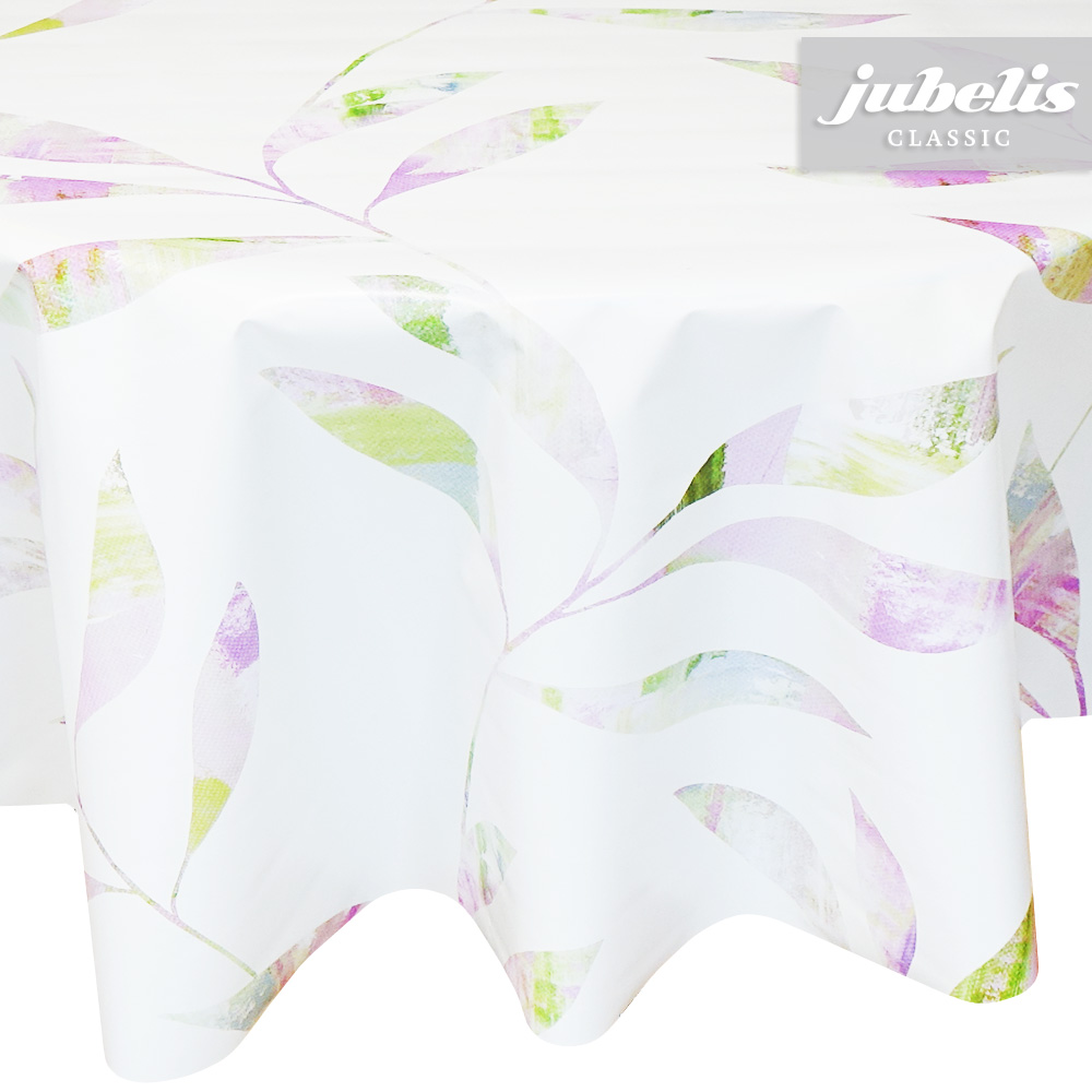 Diese freundliche Tischdecke besitzt auf einem hellen Untergrund ein leicht abstraktes Blättermuster. Der Gesamteindruck, den dieses Wachstuch hinterlässt, ist als freundlich zu bezeichnen. Bringen Sie mit diesem Tischbelag gute Stimmung in Ihren Wohnbereich. Dank der besonderen Produkteigenschaften ist dieses Wachstuch sowohl für die private als auch für die gewerbliche Anwendung bestens geeignet. Das Wachstuch mit seinem weichen Vliesrücken und einer glatten Oberfläche schützt empfindliche Tischoberflächen und lässt sich durch feuchtes Abwischen einfach reinigen. Da die Oberfläche wasserabweisend ist, kann das Wachstuch sowohl im Innen- als auch im Außenbereich eingesetzt werden. Profitieren auch Sie von diesem gleichermaßen ansprechenden und pflegeleichten Tischbelag aus Wachstuch. Dieser schöne Tischbelag ist hier als Tischdecke, Meterware oder ganze Rolle erhältlich. Direkt neben der Produktabbildung finden Sie das Auswahlmenü, in dem Sie Größe und Form wählen können. Benötigen Sie von diesem schönen und praktischen Wachstuch eine größere Anzahl, so bietet sich der Kauf einer ganzen Rolle an, die zusätzlich zu unserem günstigen Meterpreis abermals rabattiert ist.