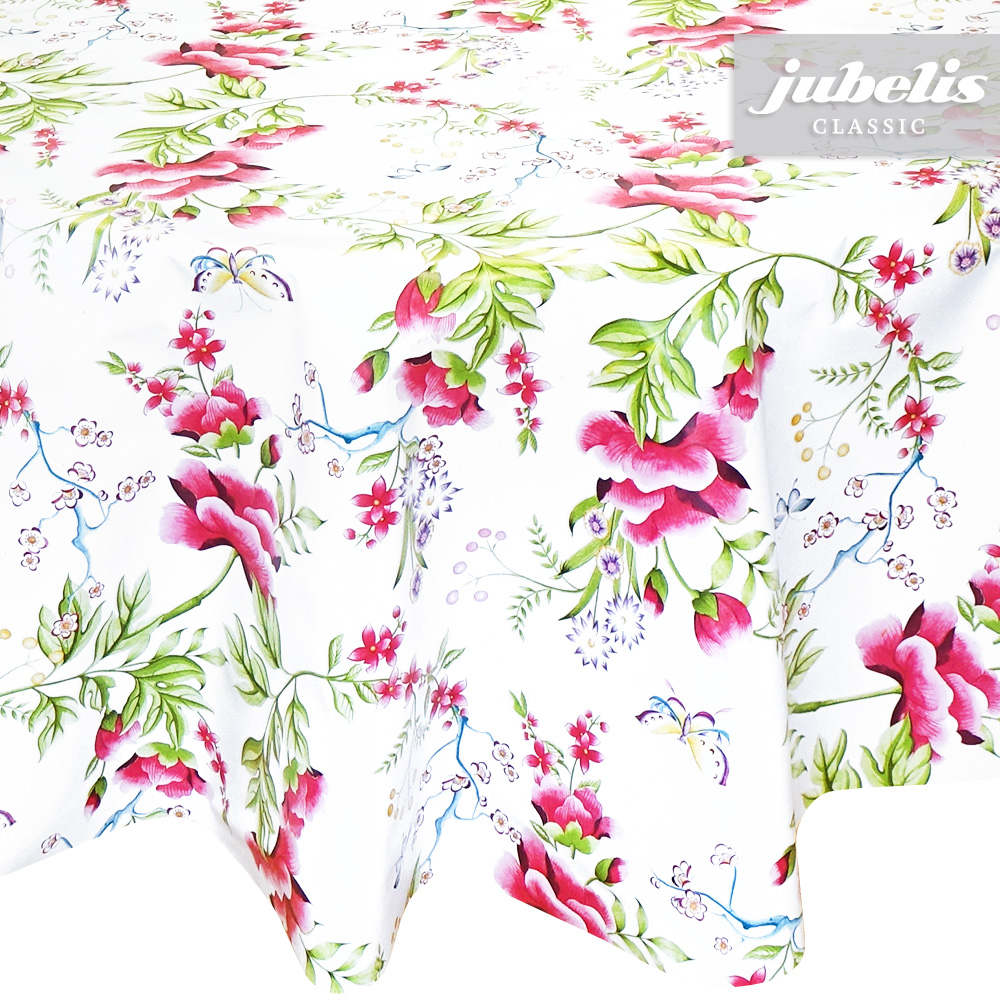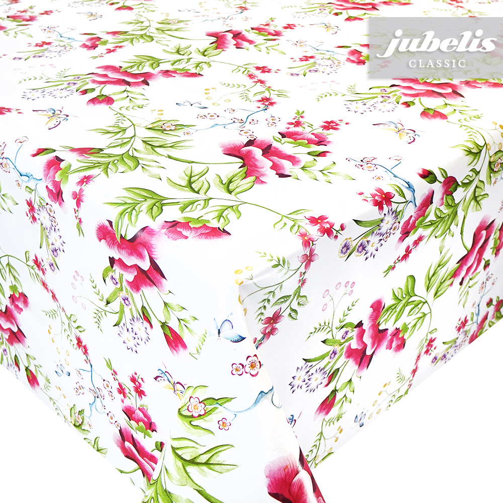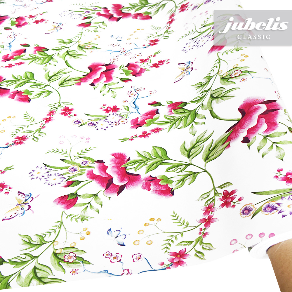 Mit dem Wachstuch Lillemor bekommen Sie ein opulentes Blumenmuster auf hellem Grund. Diese abwaschbare Tischdecke weiß dank ihres besonderen Musters zu begeistern und wertet den Wohnbereich durch ihre Verwendung ganz einfach auf. Das Wachstuch mit seinem weichen Vliesrücken und einer glatten Oberfläche schützt empfindliche Tischoberflächen und lässt sich durch feuchtes Abwischen einfach reinigen. Da die Oberfläche wasserabweisend ist, kann das Wachstuch sowohl im Innen- als auch im Außenbereich eingesetzt werden. Das Muster wird hier im Shop auch noch in anderen Farben angeboten. Profitieren auch Sie von diesem gleichermaßen ansprechenden und pflegeleichten Tischbelag aus Wachstuch. Dieser schöne Tischbelag ist hier als Tischdecke, Meterware oder ganze Rolle erhältlich. Direkt neben der Produktabbildung finden Sie das Auswahlmenü, in dem Sie Größe und Form wählen können. Benötigen Sie von diesem schönen und praktischen Wachstuch eine größere Anzahl, so bietet sich hier der Kauf einer ganzen Rolle an, die zusätzlich zu unserem günstigen Meterpreis abermals rabattiert ist.
