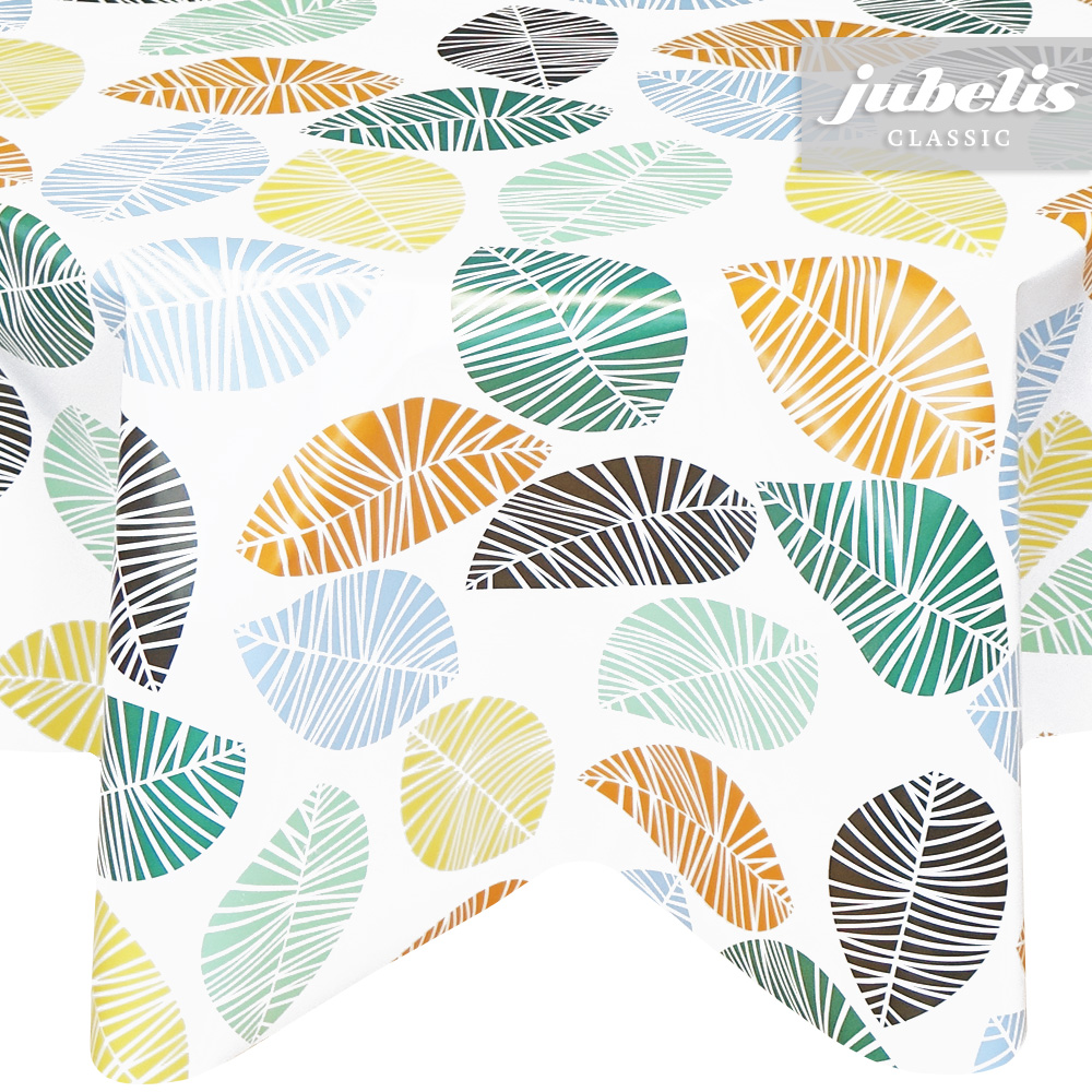 Dieses Wachstuch besitzt ein stark vereinfachtes Blättermuster, welches schon eher an geometrische Formen erinnert. Die verwendeten Farben auf hellem Grund verleihen dieser abwaschbaren Tischdecke ihre freundliche Erscheinung. Das wachst du mit dem Namen Rayla Ist in einer zweiten Farbvariante auswählbar. Dank der besonderen Produkteigenschaften ist dieses Wachstuch sowohl für die private als auch für die gewerbliche Anwendung bestens geeignet. Das Wachstuch mit seinem weichen Vliesrücken und einer glatten Oberfläche schützt empfindliche Tischoberflächen und lässt sich durch feuchtes Abwischen einfach reinigen. Da die Oberfläche wasserabweisend ist, kann das Wachstuch sowohl im Innen- als auch im Außenbereich eingesetzt werden. Profitieren auch Sie von diesem gleichermaßen ansprechenden und pflegeleichten Tischbelag aus Wachstuch. Dieser schöne Tischbelag ist hier als Tischdecke, Meterware oder ganze Rolle erhältlich. Direkt neben der Produktabbildung finden Sie das Auswahlmenü, in dem Sie Größe und Form wählen können. Benötigen Sie von diesem schönen und praktischen Wachstuch eine größere Anzahl, so bietet sich der Kauf einer ganzen Rolle an, die zusätzlich zu unserem günstigen Meterpreis abermals rabattiert ist.