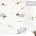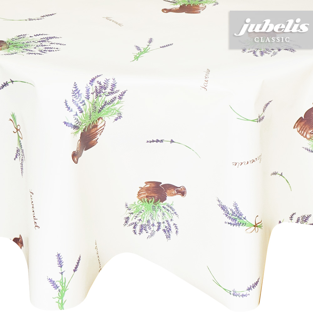 Auf dezentem Grund befinden sich hier verschiedene Abbildungen von Keramik und Lavendel sowie feinen Schriftzüge. Die Grundfarbe und das minimalistische Muster machen diesen Tischbelag aus Wachstuch zu einem Allrounder im Wohnbereich. Mit dieser Dekoration besitzen sie einen wirksamen Tischschutz. Dank der besonderen Produkteigenschaften ist dieses Wachstuch sowohl für die private als auch für die gewerbliche Anwendung bestens geeignet. Das Wachstuch mit seinem weichen Vliesrücken und einer glatten Oberfläche schützt empfindliche Tischoberflächen und lässt sich durch feuchtes Abwischen einfach reinigen. Da die Oberfläche wasserabweisend ist, kann das Wachstuch sowohl im Innen- als auch im Außenbereich eingesetzt werden. Profitieren auch Sie von diesem gleichermaßen ansprechenden und pflegeleichten Tischbelag aus Wachstuch. Dieser schöne Tischbelag ist hier als Tischdecke, Meterware oder ganze Rolle erhältlich. Direkt neben der Produktabbildung finden Sie das Auswahlmenü, in dem Sie Größe und Form wählen können. Benötigen Sie von diesem schönen und praktischen Wachstuch eine größere Anzahl, so bietet sich der Kauf einer ganzen Rolle an, die zusätzlich zu unserem günstigen Meterpreis abermals rabattiert ist.