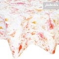 Dieses Wachstuch zeigt anschaulich, wie eine schöne Blumen-Tischdecke aussehen kann. Der ganze Tischbelag ist mit opulenten Blüten, die lückenlos aneinandergereit sind, bedeckt. Und das Ergebnis ist mehr als überzeugend. Nutzen Sie diese wunderschöne abwaschbare Tischdecke in Ihrem Alltag. Dank der besonderen Produkteigenschaften ist dieses Wachstuch sowohl für die private als auch für die gewerbliche Anwendung bestens geeignet. Das Wachstuch mit seinem weichen Vliesrücken und einer glatten Oberfläche schützt empfindliche Tischoberflächen und lässt sich durch feuchtes Abwischen einfach reinigen. Da die Oberfläche wasserabweisend ist, kann das Wachstuch sowohl im Innen- als auch im Außenbereich eingesetzt werden. Profitieren auch Sie von diesem gleichermaßen ansprechenden und pflegeleichten Tischbelag aus Wachstuch. Dieser schöne Tischbelag ist hier als Tischdecke, Meterware oder ganze Rolle erhältlich. Direkt neben der Produktabbildung finden Sie das Auswahlmenü, in dem Sie Größe und Form wählen können. Benötigen Sie von diesem schönen und praktischen Wachstuch eine größere Anzahl, so bietet sich der Kauf einer ganzen Rolle an, die zusätzlich zu unserem günstigen Meterpreis abermals rabattiert ist.
