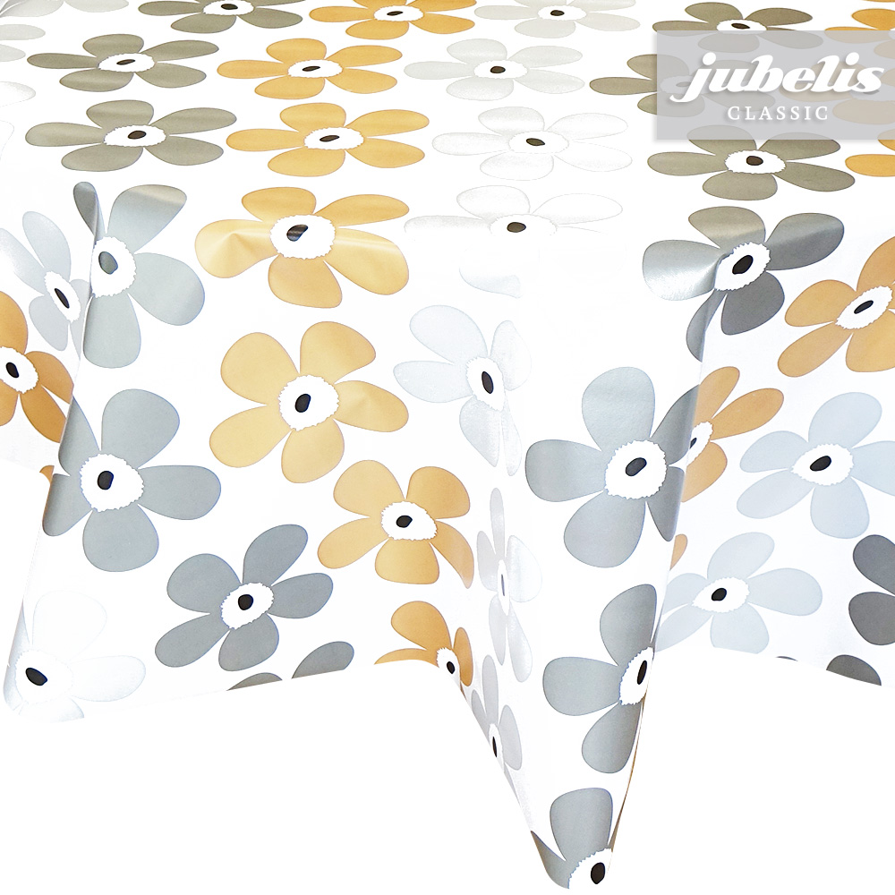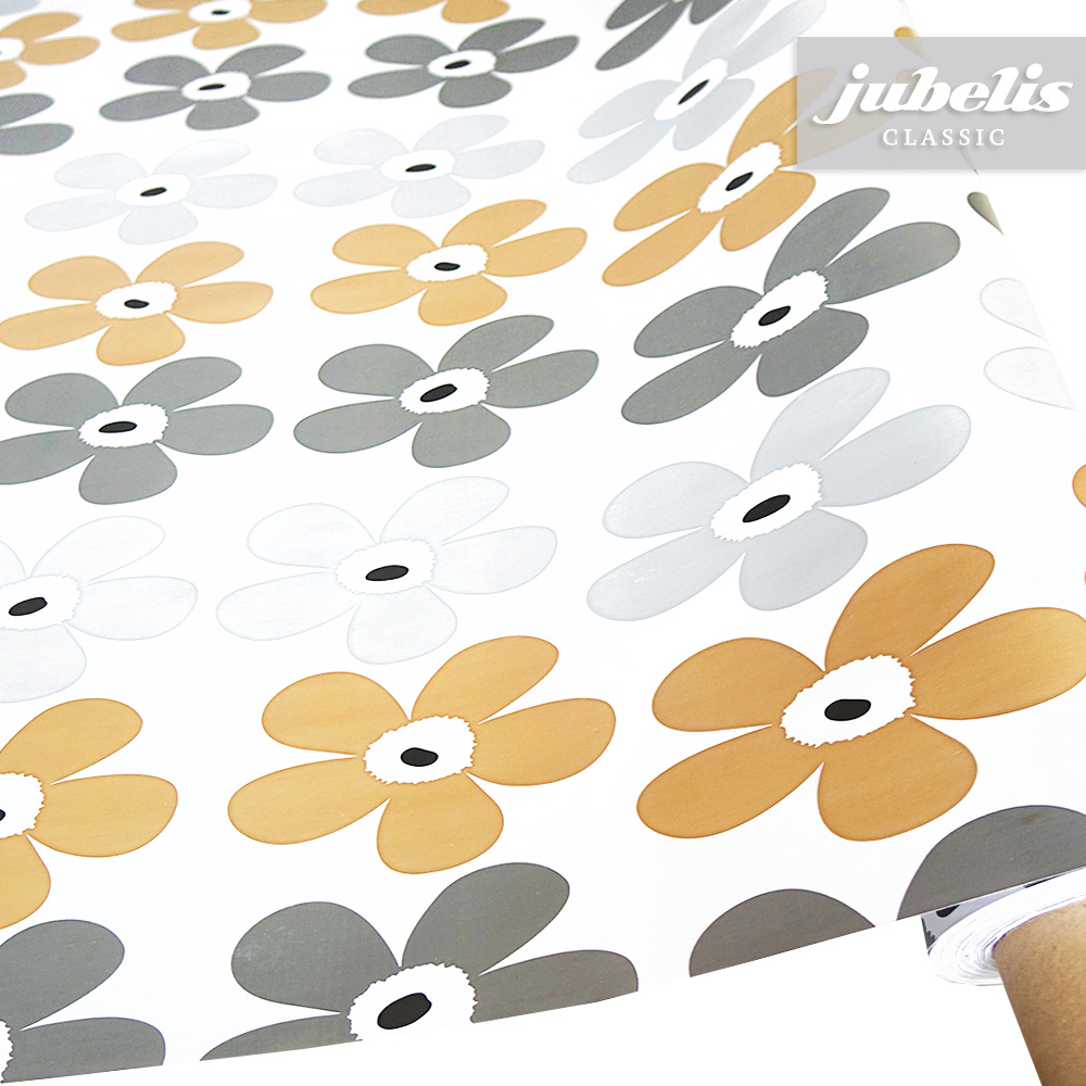 Dieses Wachstuch mit seinem einfachen Blumenmuster versprüht eine gewisse Leichtigkeit und wertet den Wohnbereich auf. Die Blumenabbildungen sind in drei verschiedenen Farben aufgereiht und über den gesamten Tischbelag verteilt. Nutzen Sie diesen modernen und praktischen Tischbelag auf Ihrem Tisch. Das Wachstuch mit seinem weichen Vliesrücken und einer glatten Oberfläche schützt empfindliche Tischoberflächen und lässt sich durch feuchtes Abwischen einfach reinigen. Da die Oberfläche wasserabweisend ist, kann das Wachstuch sowohl im Innen- als auch im Außenbereich eingesetzt werden. Das Muster wird hier im Shop auch noch in anderen Farben angeboten. Profitieren auch Sie von diesem gleichermaßen ansprechenden und pflegeleichten Tischbelag aus Wachstuch. Dieser schöne Tischbelag ist hier als Tischdecke, Meterware oder ganze Rolle erhältlich. Direkt neben der Produktabbildung finden Sie das Auswahlmenü, in dem Sie Größe und Form wählen können. Benötigen Sie von diesem schönen und praktischen Wachstuch eine größere Anzahl, so bietet sich hier der Kauf einer ganzen Rolle an, die zusätzlich zu unserem günstigen Meterpreis abermals rabattiert ist.