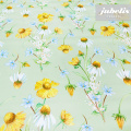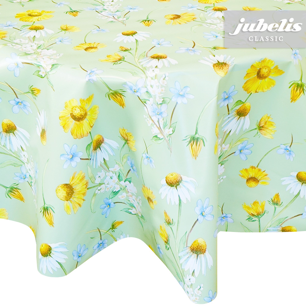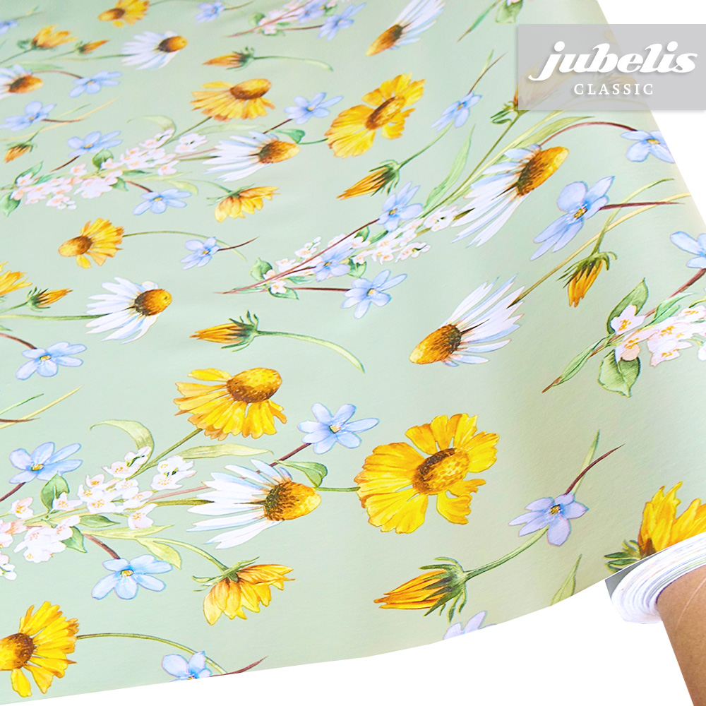 Die Farbkombination, die sich hier bei dieser Tischdecke ergibt, kann man durchaus als freundlich bezeichnen. Verschiedene Blumenabbildung sind auf der Oberfläche des beschichteten Tischbelags gleichmäßig verstreut. Das Wachstuch mit seinem weichen Vliesrücken und einer glatten Oberfläche schützt empfindliche Tischoberflächen und lässt sich durch feuchtes Abwischen einfach reinigen. Da die Oberfläche wasserabweisend ist, kann das Wachstuch sowohl im Innen- als auch im Außenbereich eingesetzt werden. Das Muster wird hier im Shop auch noch in anderen Farben angeboten. Profitieren auch Sie von diesem gleichermaßen ansprechenden und pflegeleichten Tischbelag aus Wachstuch. Dieser schöne Tischbelag ist hier als Tischdecke, Meterware oder ganze Rolle erhältlich. Direkt neben der Produktabbildung finden Sie das Auswahlmenü, in dem Sie Größe und Form wählen können. Benötigen Sie von diesem schönen und praktischen Wachstuch eine größere Anzahl, so bietet sich hier der Kauf einer ganzen Rolle an, die zusätzlich zu unserem günstigen Meterpreis abermals rabattiert ist.
