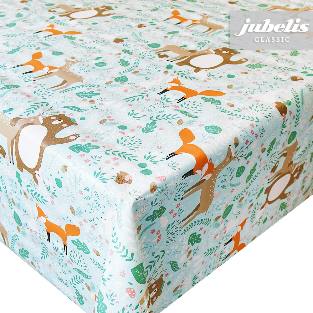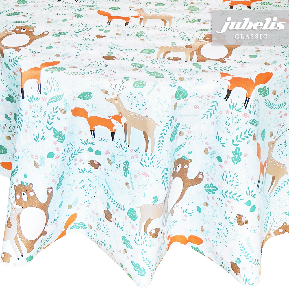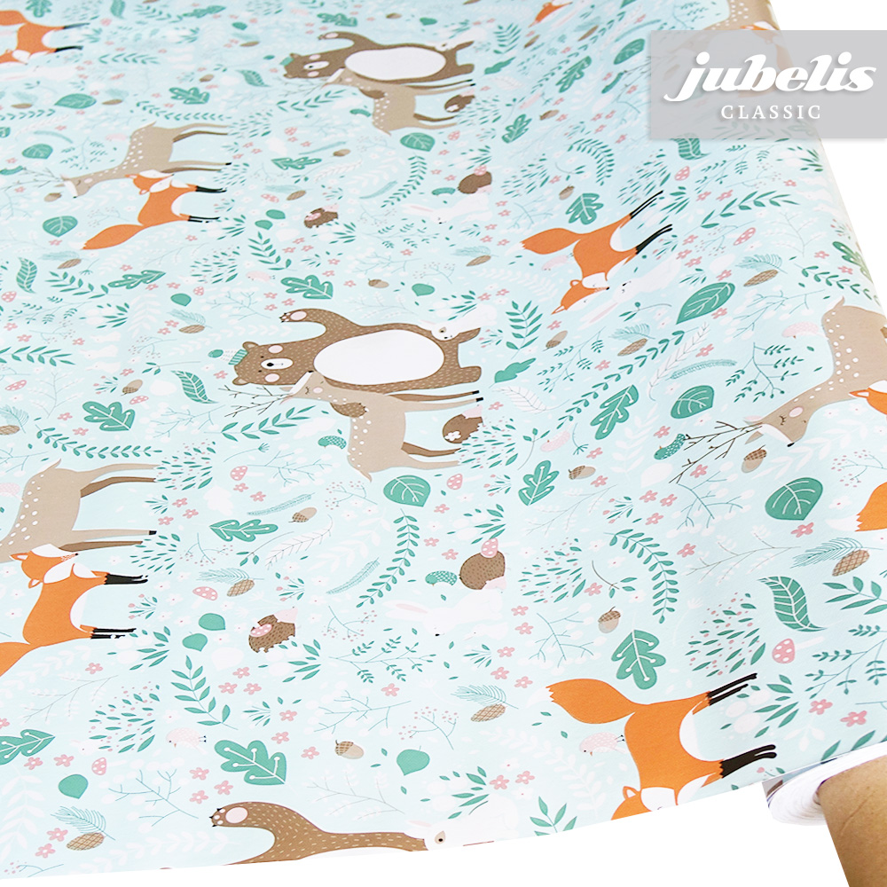 Auf diesem Wachstuch sind verschiedene Waldtiere zu sehen. Die verwendeten Farben und Musterung passen gut zusammen und ergeben einen schönen Gesamteindruck. Dieses freundliche Wachstuch, auf dem viel zu entdecken ist, sorgt für gute Stimmung und das ist auch noch praktisch. Dank der besonderen Produkteigenschaften ist dieses Wachstuch sowohl für die private als auch für die gewerbliche Anwendung bestens geeignet. Das Wachstuch mit seinem weichen Vliesrücken und einer glatten Oberfläche schützt empfindliche Tischoberflächen und lässt sich durch feuchtes Abwischen einfach reinigen. Da die Oberfläche wasserabweisend ist, kann das Wachstuch sowohl im Innen- als auch im Außenbereich eingesetzt werden. Profitieren auch Sie von diesem gleichermaßen ansprechenden und pflegeleichten Tischbelag aus Wachstuch. Dieser schöne Tischbelag ist hier als Tischdecke, Meterware oder ganze Rolle erhältlich. Direkt neben der Produktabbildung finden Sie das Auswahlmenü, in dem Sie Größe und Form wählen können. Benötigen Sie von diesem schönen und praktischen Wachstuch eine größere Anzahl, so bietet sich der Kauf einer ganzen Rolle an, die zusätzlich zu unserem günstigen Meterpreis abermals rabattiert ist.